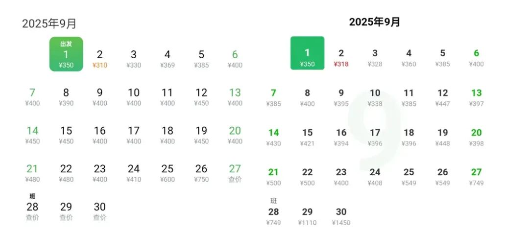 左为航旅纵横,右为某平台