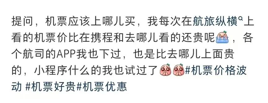 也有人疑惑,机票到底该上哪儿买,每次在航旅纵横上看的机票价格比其他平台还贵。