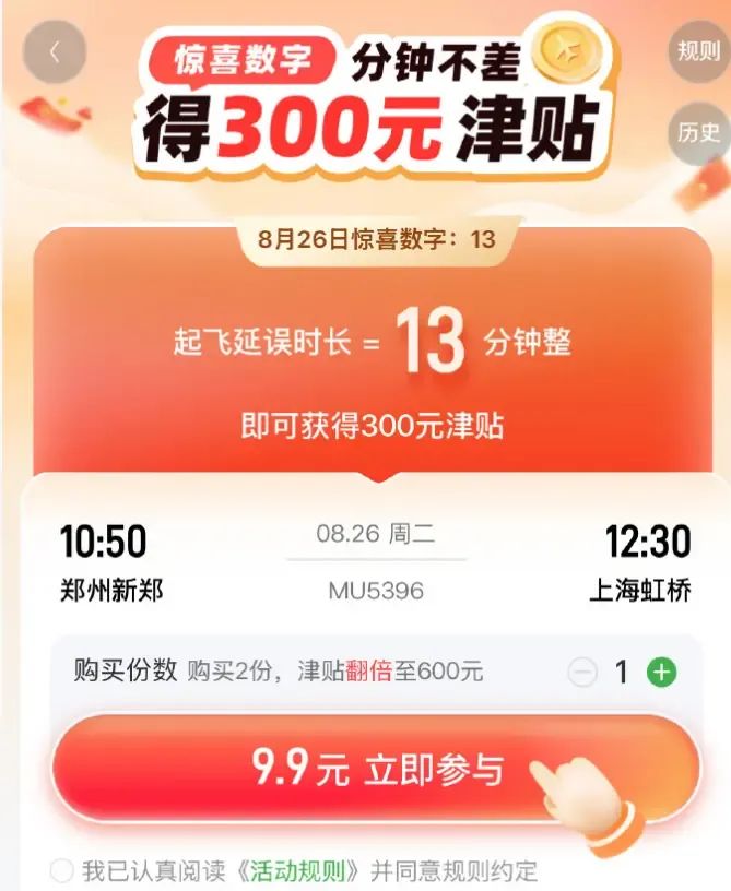 据了解,航旅纵横这款保险产品的规则设计极为特殊:每天随机设定一个“惊喜数字”,用户购买后,只有当航班起飞延误时长恰好等于该数字(以分钟为单位,整分钟数)时,才可获赔300元津贴。例如,若当日数字为14,则航班必须正好延误14分钟,多一分钟、少一分钟均不赔付。不少消费者在实际体验后直呼“被坑”,纷纷在社交平台上分享自己的“踩雷”经历。