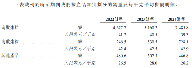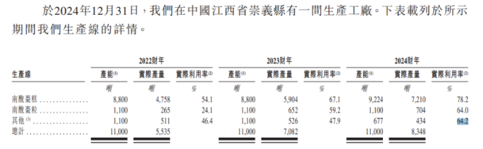 招股书显示,公司报告期内拥有年产11000吨产能,其中南酸枣糕、南酸枣粒以及其他产品设计的年产能分别为8000吨、1100吨和1100吨。而在2024年,为满足主力产品市场需求的增加,来自其他产品的设计产能减少至677吨,而南酸枣糕的产能增至9224吨。