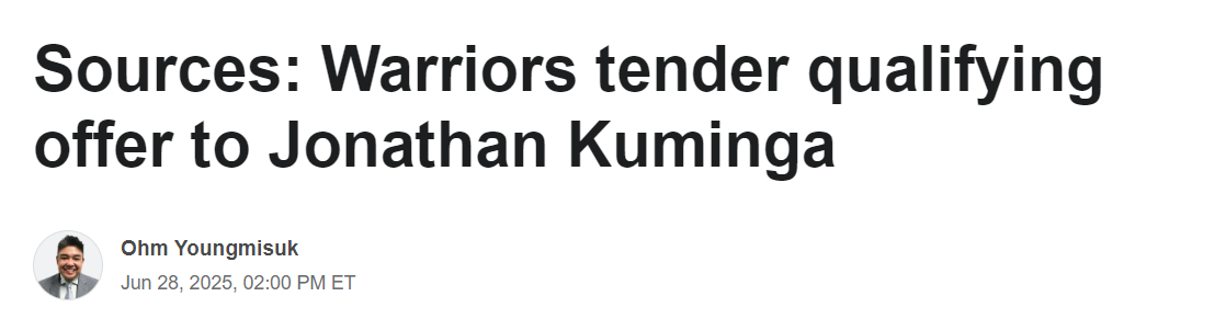 库明加的未来将影响勇士在自由市场的操作空间,以及他们如何围绕斯库里、巴特勒和格林补充更多帮手。勇士目前需要一名中锋,并提升投射、防守和组织能力。