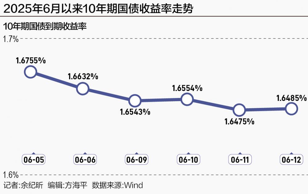 利率债成交行情“暖意”再现,截至6月12日发稿时,本月10年期国债活跃券收益率在窄幅震荡中延续下行趋势,其收益率自5月29日1.6975%的高点一路下行,截至6月12日发稿时最低触及1.6350%,逐步逼近去年年底创下1.6%附近的历史低位。